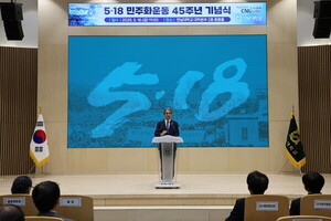 Chonnam National University (CNU) held a ceremony to commemorate the 45th anniversary of the May 18 Democratization Movement at Yong-bong Hall located in Administration Headquarters on May 16. Numerous people, including CNU President, faculty, staff members, and students attended the event.In the co