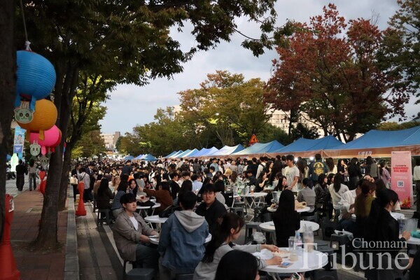 CNU's annual festival "Yongbong Daedongpuri" took place from Sept. 29 to 30 across the campus. It is one of the largest festivals annually hosted by the CNU General Student Council for the university and Gwangju communities. The two-day festival featured student clubs and departmental booths offering diverse food and activities. There were also live performances by bands, dance crews, and renowned guest singers on the main stage.